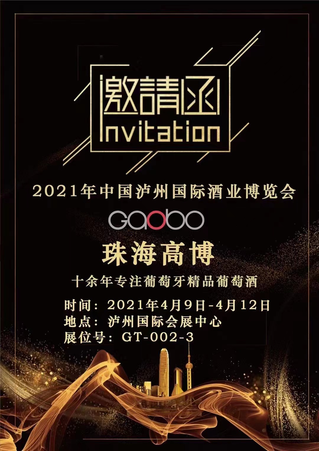 From April 9 to 12, 2021, participate in China Luzhou International Wine Expo.