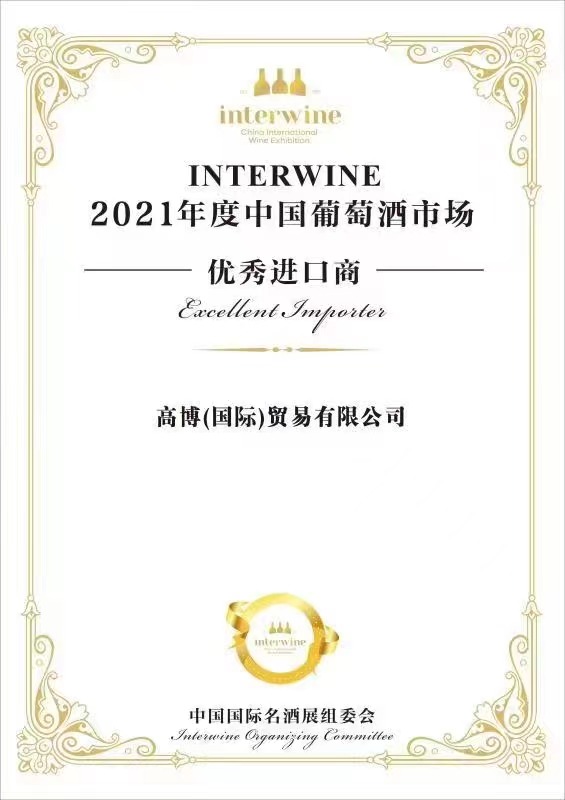 On October 28, 2021, Gaobo (International) Trading Co., Ltd. won the title of excellent importer in China's wine market in 2021.